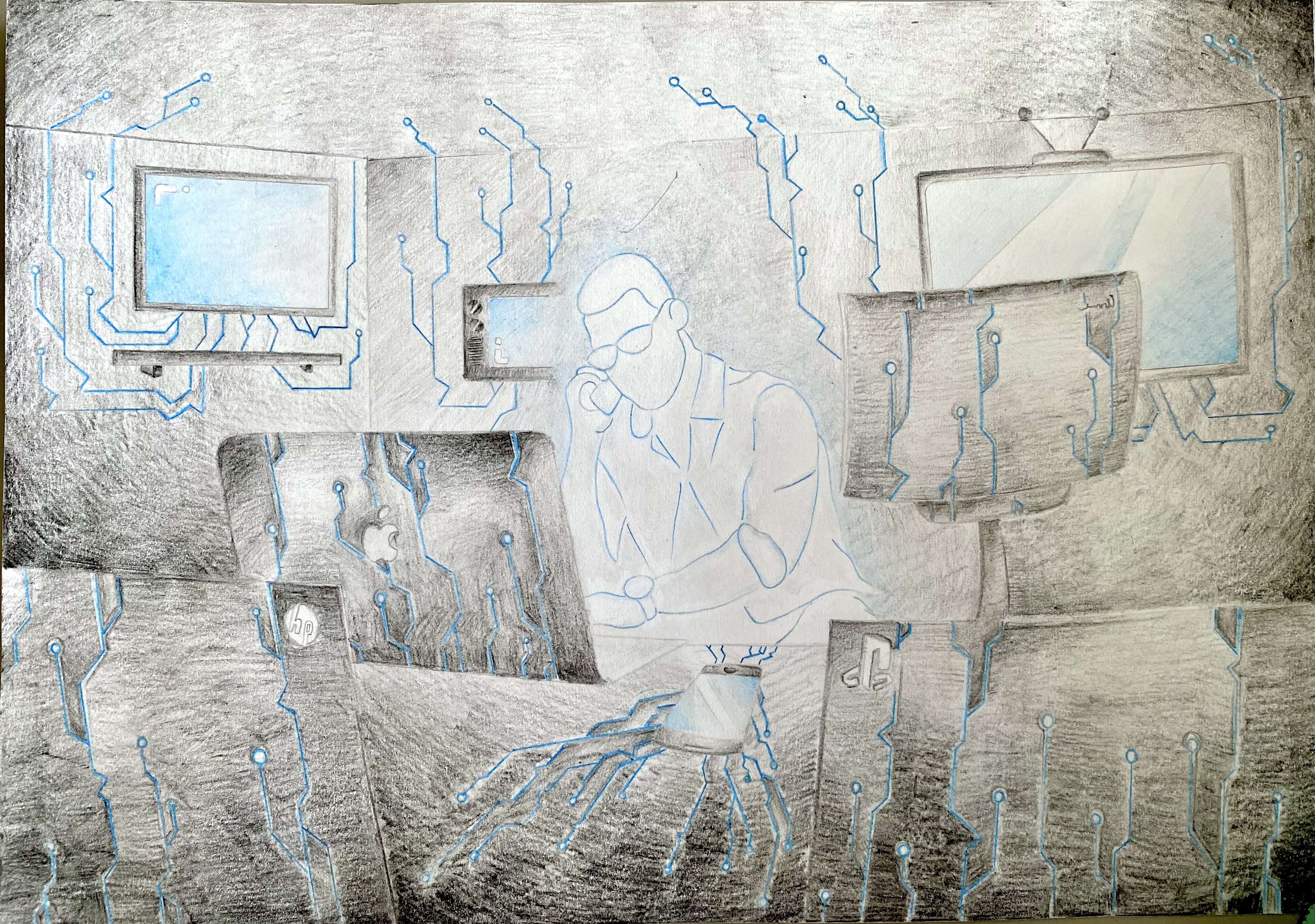 Beim 55. Internationalen Jugendwettbewerb jugend creativ unter dem Motto „Echt digital“ 2025 hat Mio Pelivan einen Preis gewonnen mit seinem Bild „screens“ in der Kategorie Altersgruppe IV: Klassen 7 bis 9.